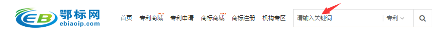 1.通過首頁右上方的搜索欄,輸入關鍵字的方式搜索專利商標信息,如下圖: